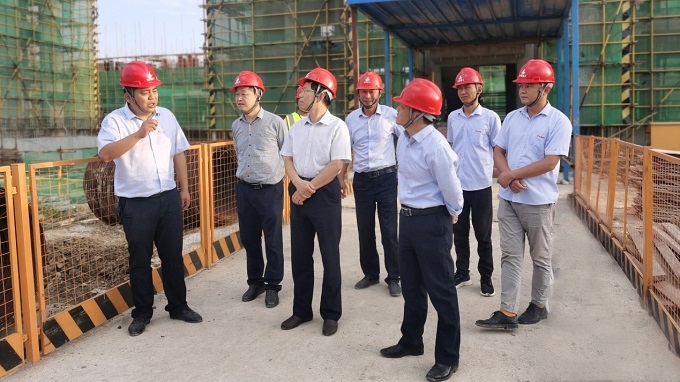 王厚良一行實地查看施工現場和國慶期間即將交付使用的展示區域樣板房建設,詳細了解項目進展、工期要求、施工重難點等,他對項目管理總體情況、特別是復工復產以來一線黨員職工大干快上搶工超產給予充分肯定。