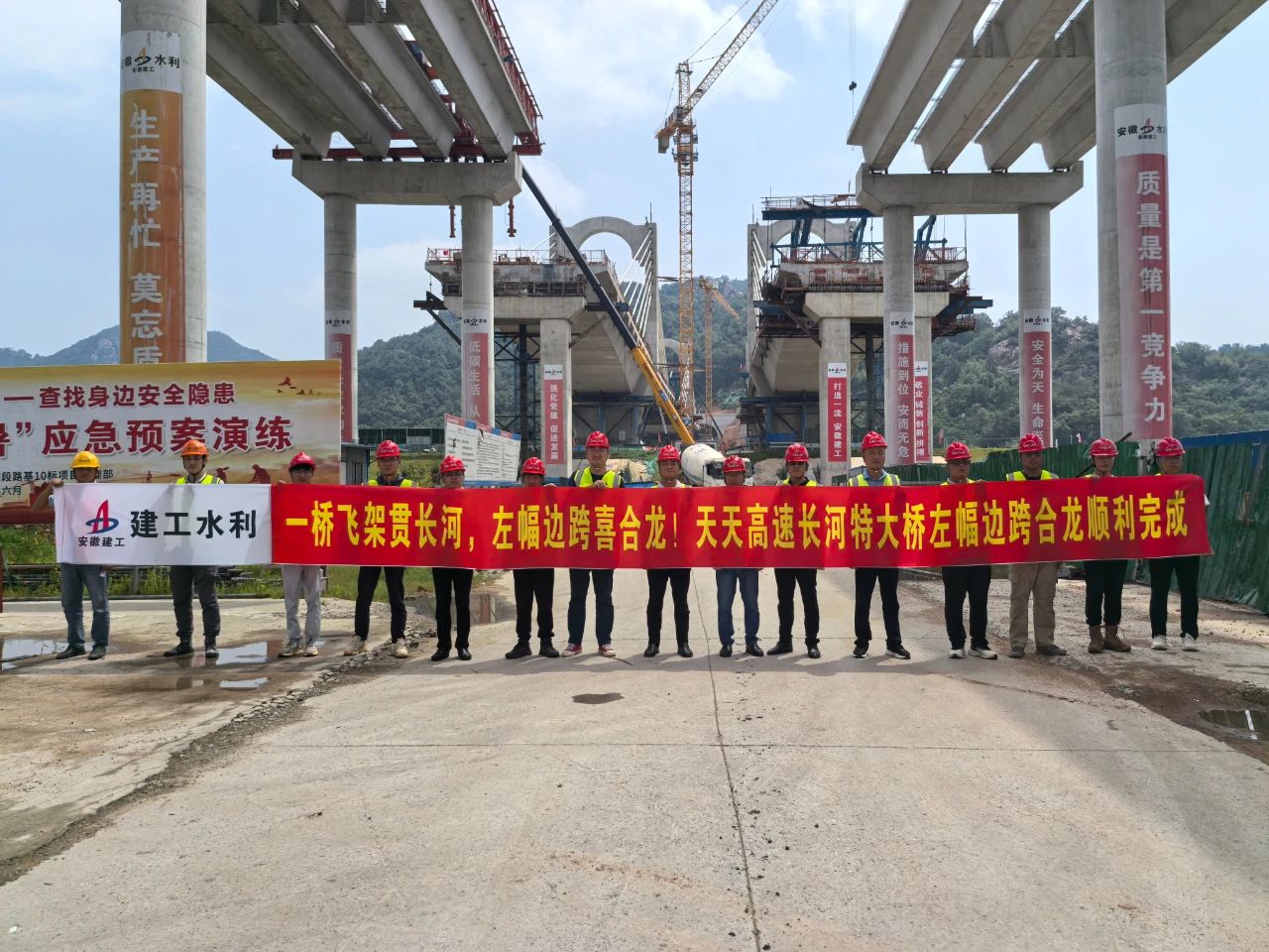 6月23日晚,隨著最后一方混凝土澆筑完成,建工水利公司天天高速路基10標迎來突破性進展——控制性工程長河特大橋左幅邊跨順利完成合龍,為其他邊跨的最終合龍提供了寶貴的施工經驗和技術參考,并獲人民網等主流媒體關注報道。